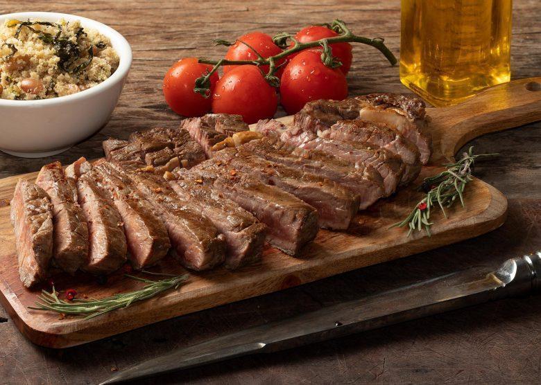 Acompanha: Arroz integral, Salada e Iscas de Alcatra.