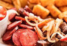 Acompanha Arroz, Feijão, Filé de Frango A Milanesa,Calabresa acebolado e farofa